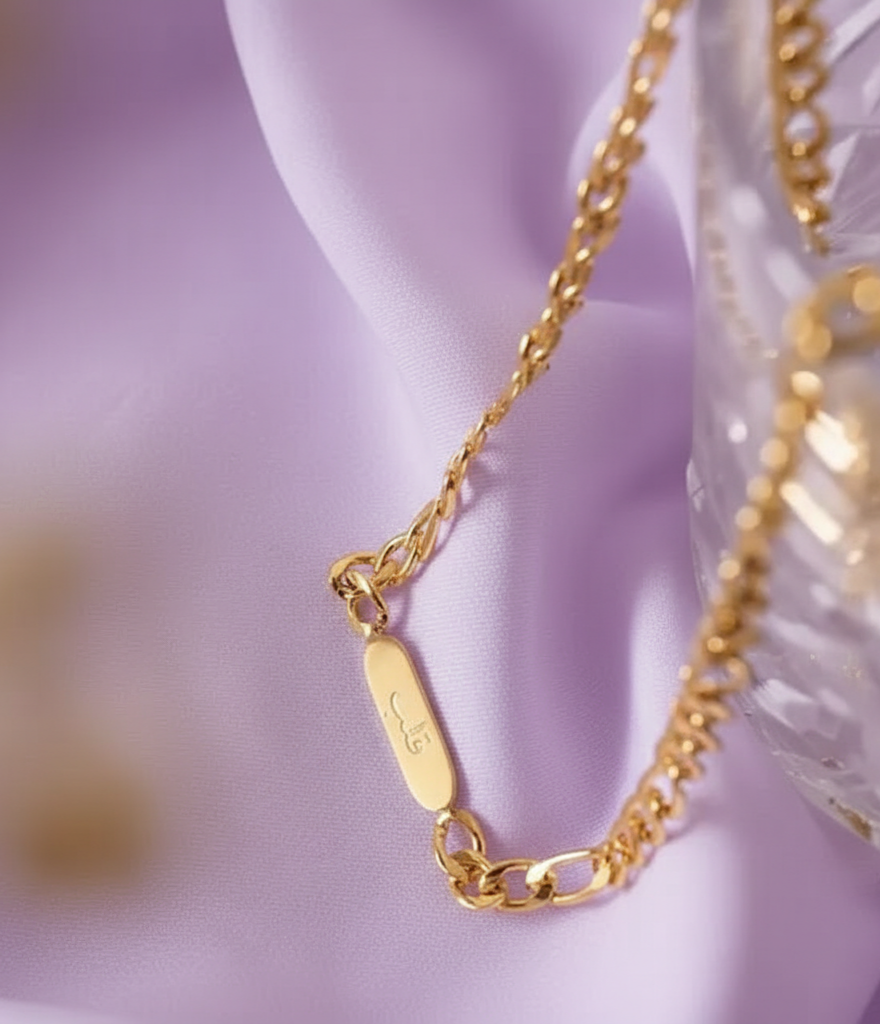 Portez ce bijou sentimental comme un rappel quotidien : celui de partager l'amour avec ceux qui vous entourent, mais aussi de vous accorder l'amour que vous méritez. Ce bracelet d'identité n'est pas comme les autres. Il est monté sur une intemporelle maille Figaro, reconnaissable à son rythme élégant. La plaque, à la finition délicatement brossée, offre un contraste moderne. C'est le cadeau idéal pour la personne qui occupe une place spéciale dans votre cœur, un cadeau d'amour qui symbolise un lien précieux. Fabriquée en acier inoxydable et plaquée d'or 18 carats, cette gourmette arabe est conçue pour durer. Résistante à l'eau et à la vie, elle est une preuve d'affection qui ne s'efface pas.